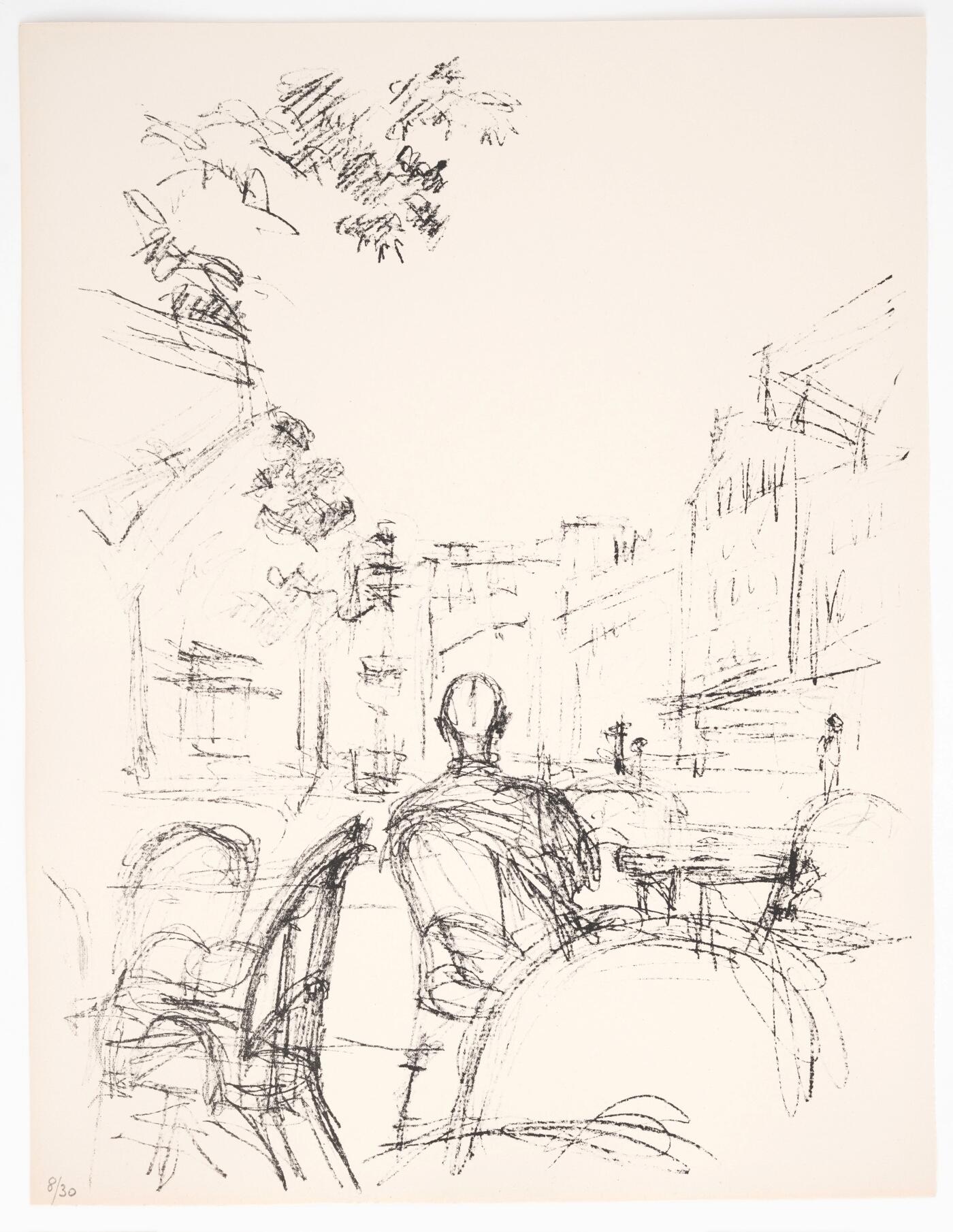 Giacometti without End transports audiences to the French capital. Providing glimpses of sidewalk cafés, tree-lined boulevards and the City of Light’s shopping arcades, this rotating display showcases 50 lithographs from Alberto Giacometti’s most monumental graphic project, Paris sans fin (conceived 1957-66; published 1969).